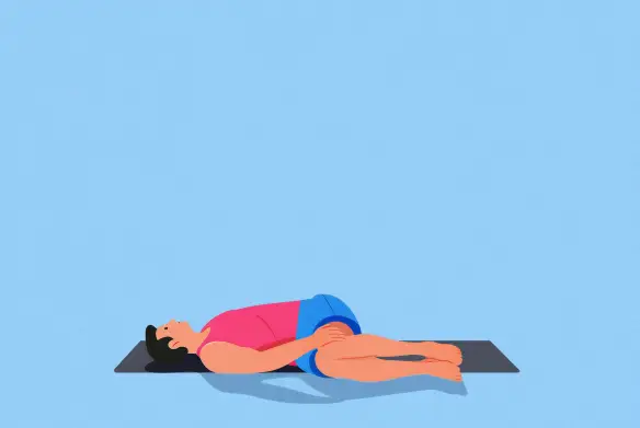 Заключительное упражнение: подложите валик или подушку под колени, лягте на спину. Прямые ноги чуть разведите в стороны, руки положите вдоль тела ладонями вверх. Закройте глаза и позвольте телу полностью расслабиться. Полежите так несколько циклов дыхания, пока не почувствуете, что готовы ко сну.
